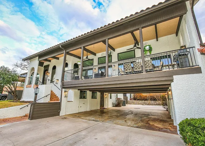 Discover an enchanting retreat at the Luxury Spanish Style Home Walking Steps To Hsb Resort, an exquisite sanctuary just 90 km from Austin-Bergstrom International Airport. Nestled in the picturesque landscape of Horseshoe Bay, this luxurious residence fuses elegant architecture with modern comforts, offering guests a serene escape from the everyday hustle and bustle. With the natural beauty of the area as a backdrop, guests can fully immerse themselves in relaxation while indulging in premium amenities.